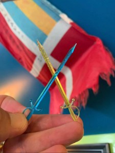 As lawn darts, cap guns, searing hot steel monkey bars, easy bake ovens and, my favorite, pop rock candy, have all fallen out of favor with the National Association of Helicopter Moms, I’m tickled pink to find these mini pirate swords lodged into the heart of my Caribbean Caesar wrap. I know our precious little dumplings can be a bit fragile but, crawling through the sandbox of life while eating Bojangles’ chicken supremes, is good for their constitution.
